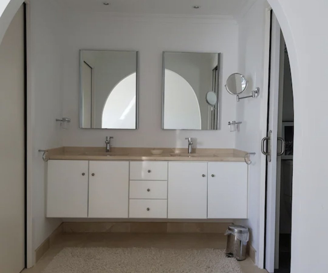 - Master suite with walk-in wardrobe, en-suite bathroom, and double vanity unit